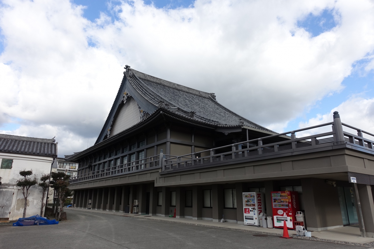 「本願寺鷺森別院」は、和歌山市内の一画にあるお寺です。京都の西本願寺の別院にあたります。境内は広いですが、だだっ広いという印象で、畳敷きの一画以外はアスファルトのようです。本堂は鉄筋コンクリート製の近代建築で、残念ながら趣は感じられませんでした。