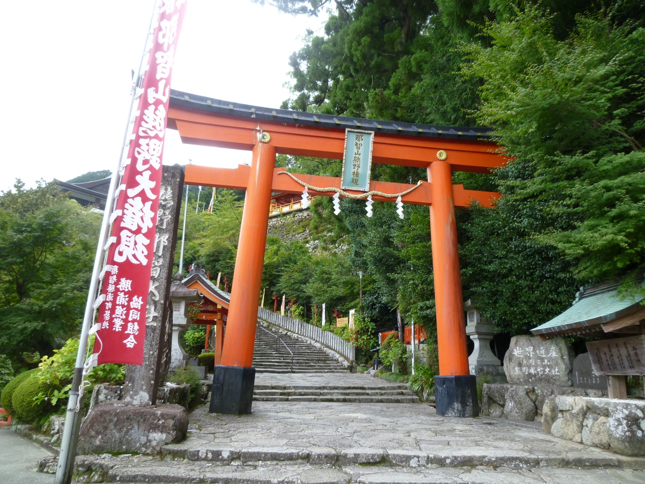 イザナミノミコトを主祭神とする熊野十二所権現を祀っています。那智山の中腹にあり、周りの木々の緑と大社の朱色が神聖です。無病息災、長寿、所願成就の御利益があります。那智大社の石碑のある鳥居から石段があり、登ると頂上付近にも鳥居があり神社が見えます。本殿隣には樹齢850年の楠もあり、御利益がある気がします。