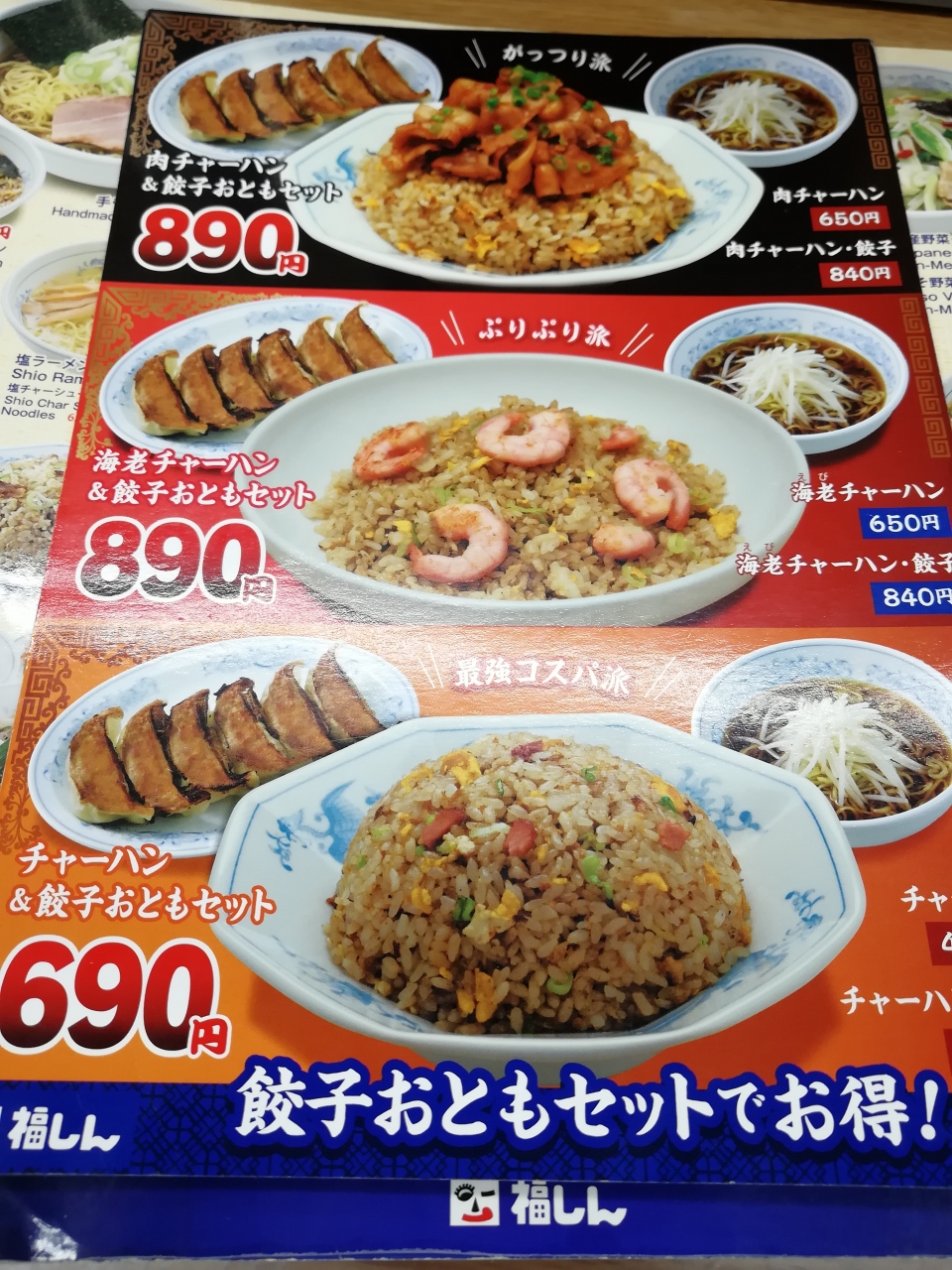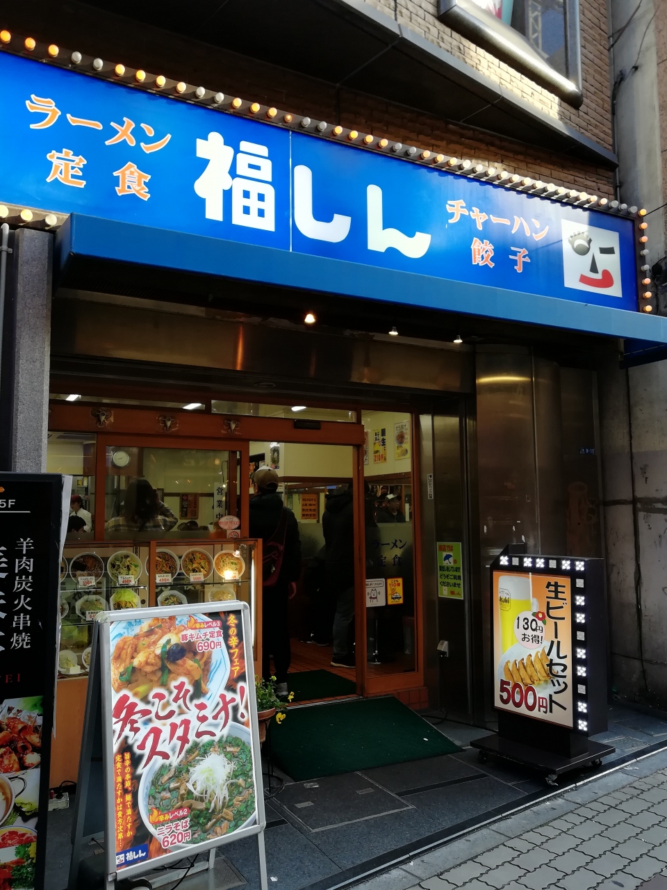 上野駅から御徒町方向に歩いて5分ほどです。中華料理の「福しん 上野駅前店」でお昼御飯をいただきました。お安くてボリュームも充分なお店です。店内はコの字型の長いカウンターと壁側のテーブル席です。外国の方も多いですね。注文はラーメンとチャーハンと餃子のセットです。ボリューム充分でした。