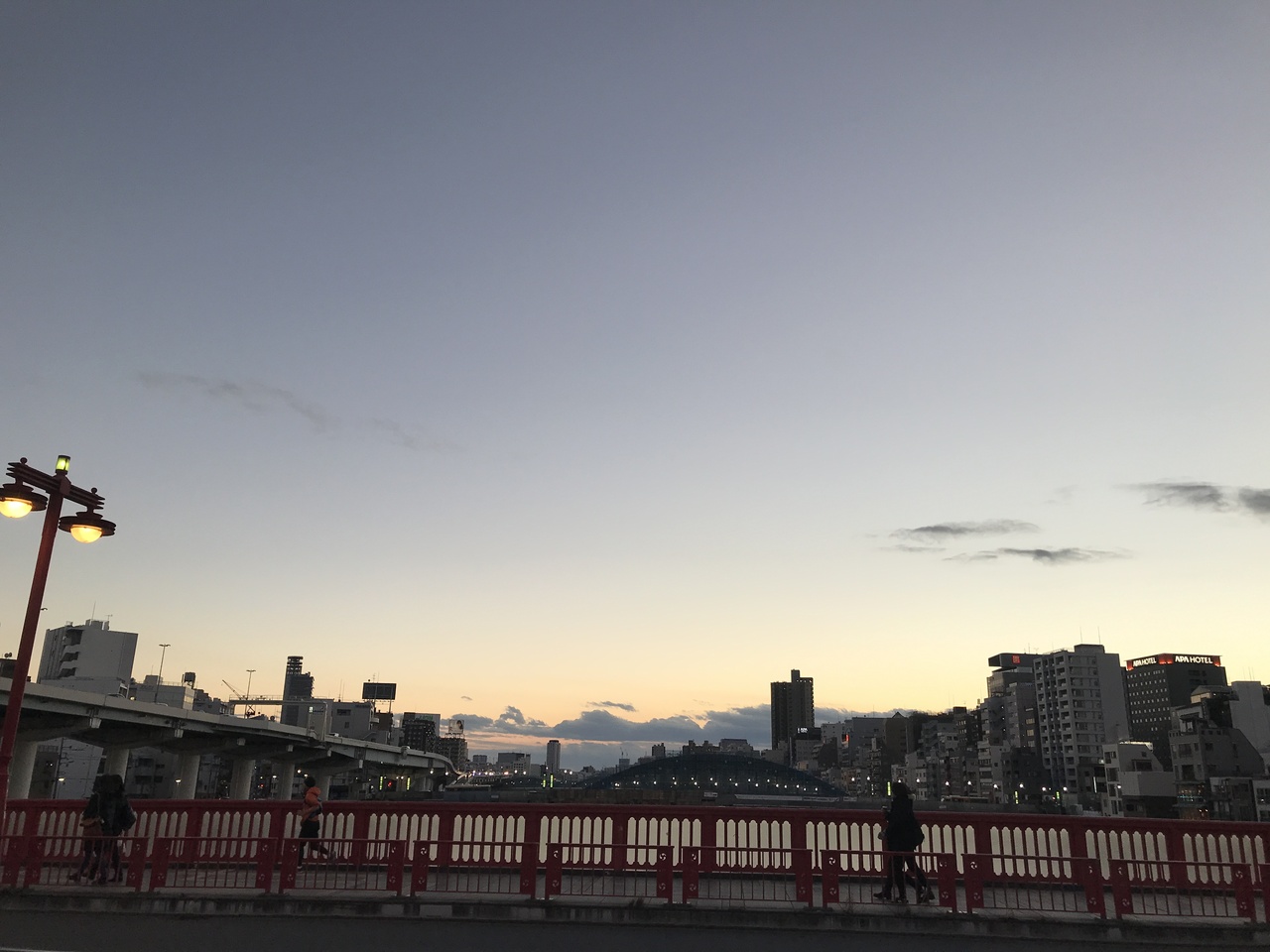 浅草駅正面改札口を出てすぐ左手にある赤い橋。浅草方面から東京スカイツリーに向かうには電車を利用するのも良いですが、私達はこの橋を歩いて渡り向かいます。歩いてしまえば意外と近いです。