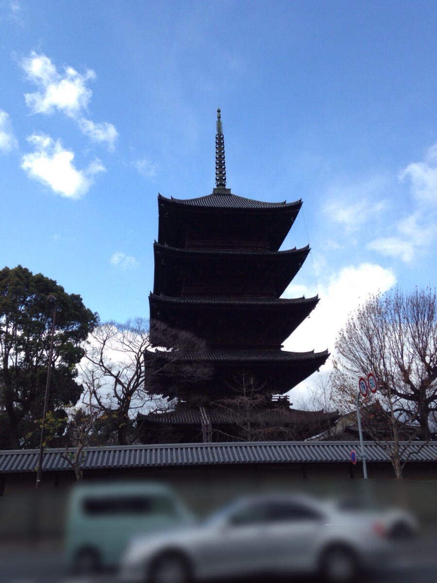 また東寺の敷地の南東の角にあるので塀の外側の歩道から見上げるだけでも青空に映える姿を堪能できました。
