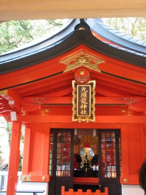 箱根の芦ノ湖畔にある神社です。箱根神社とゆかりのある神社で、昔芦ノ湖にいた毒の龍をおさめるための、龍を祀るための神社なのですが、縁結びにも効果のある神社だそうです。毎月13日に特別な参拝があるそうです。湖畔に鳥居もあります(平和の鳥居よりすこしこじんまり)。でも、行きにくい場所なので箱根神社内に新宮があって、参拝できるようになっているので、こちらが助かりますよ。