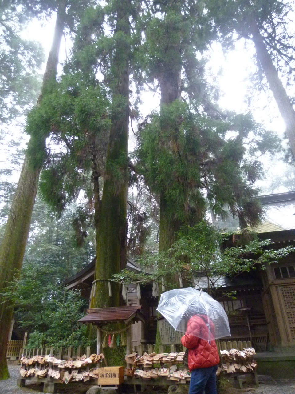 高千穂神社本殿のとなりにある夫婦杉。見上げるくらい高い杉で、周りは木の柵で囲ってあります。夫婦や恋人で手を繋ぎ、3回杉のまわりをまわると縁結び・家内安全・子孫繁栄の御利益があるそうです。地元の方に聞いたんですが、まわる方向は時計まわりの方がいいみたいです。
