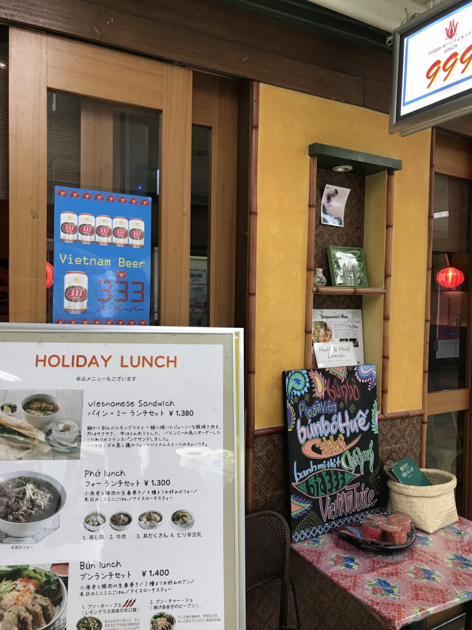 銀座コリドー街にあるベトナム料理の999さんです。ベトナムのサンドイッチのバインミーに本日のフォーのハーフサイズのセットが1080円のランチです。野菜がたっぷりと入ったベトナムなサンドイッチはボリュームあります。