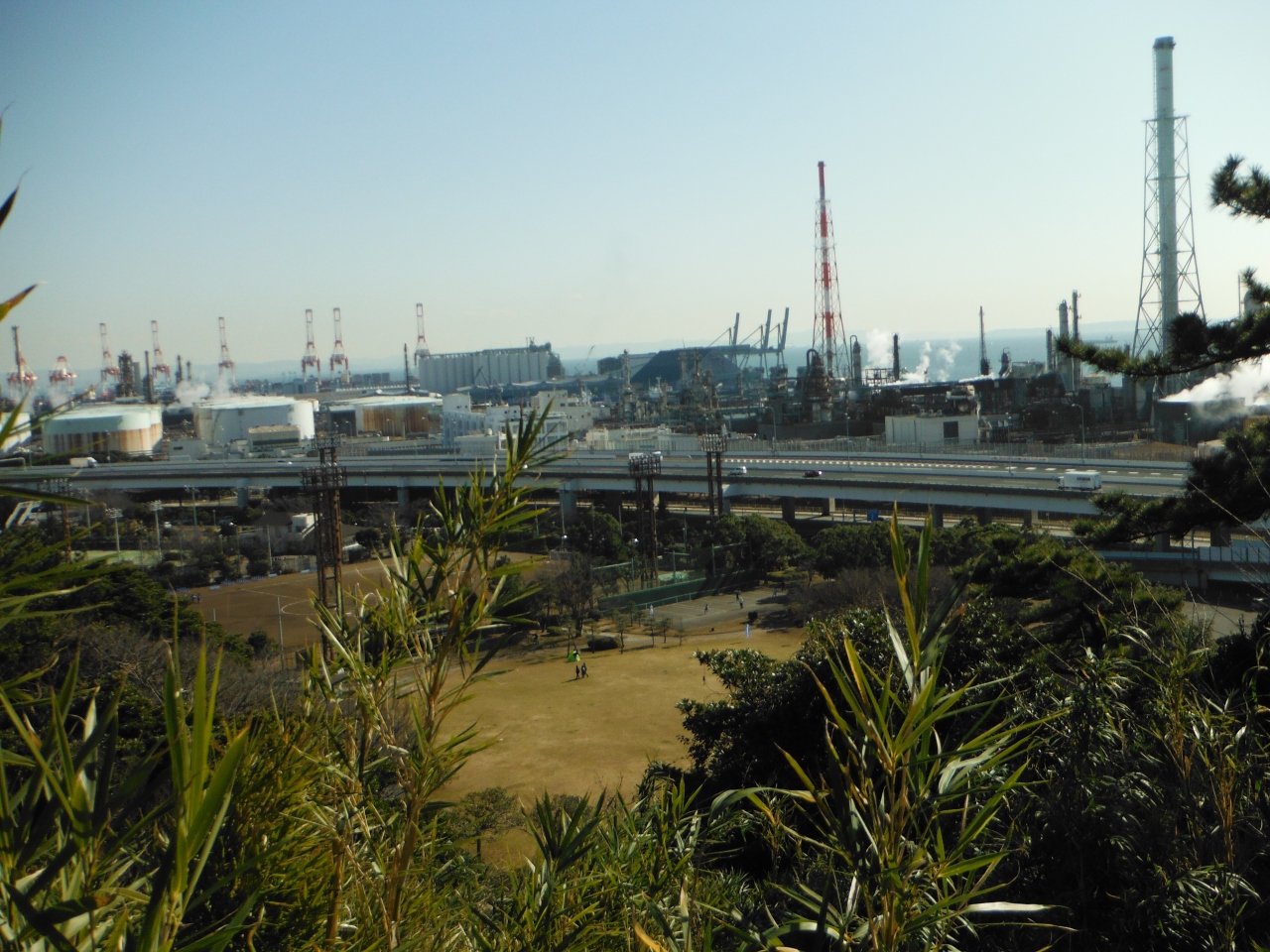 今は、海岸線は遥か先になってしまい、目の前には日本庭園の趣とは全く異なる無粋のコンビナート群と高速道路しか見えません。