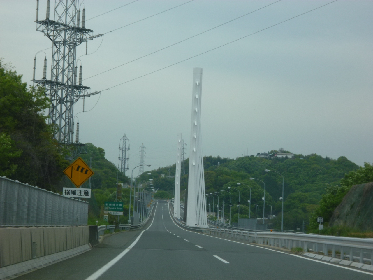尾道大橋と並行してかかっているのが新尾道大橋で、自動車専用道路です。ちなみに尾道大橋には歩道はあるようです。1999年にしまなみ海道開通に伴いできた橋だそうです。尾道市内から見ると、2つの橋が重なって見え、橋からは尾道市街が一望できます。