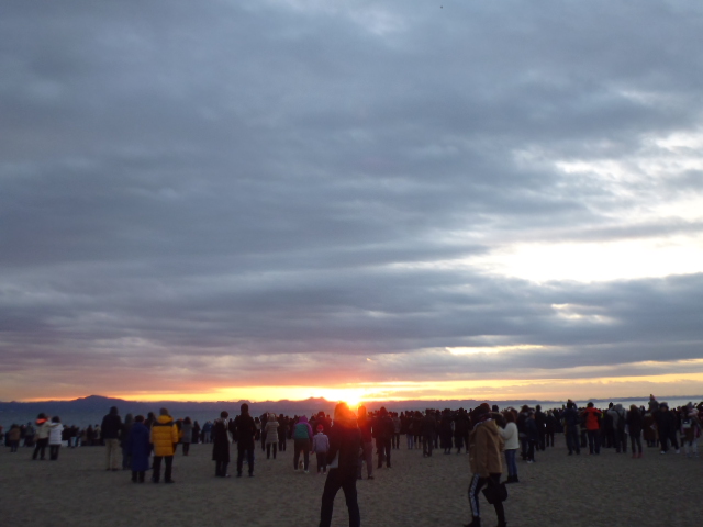 正月の日ノ出を見に三浦海岸です。海岸は京急の駅からも近いので電車できている人もけっこういます。