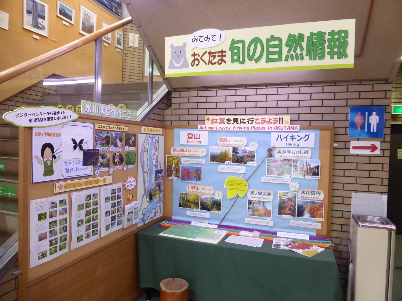 奥多摩むかしみちを歩いた後に立ち寄りました。氷川渓谷を歩く予定だったので散策マップを入手。吊橋の辺りの紅葉がきれいという事は調べていたのですが、念のためどの辺りの見頃か尋ねると北氷川橋辺りもきれいですよと教えていただけました。(教えと通り見に行くと綺麗でした。)やはり最新の情報は現地で尋ねるのが一番ですね。