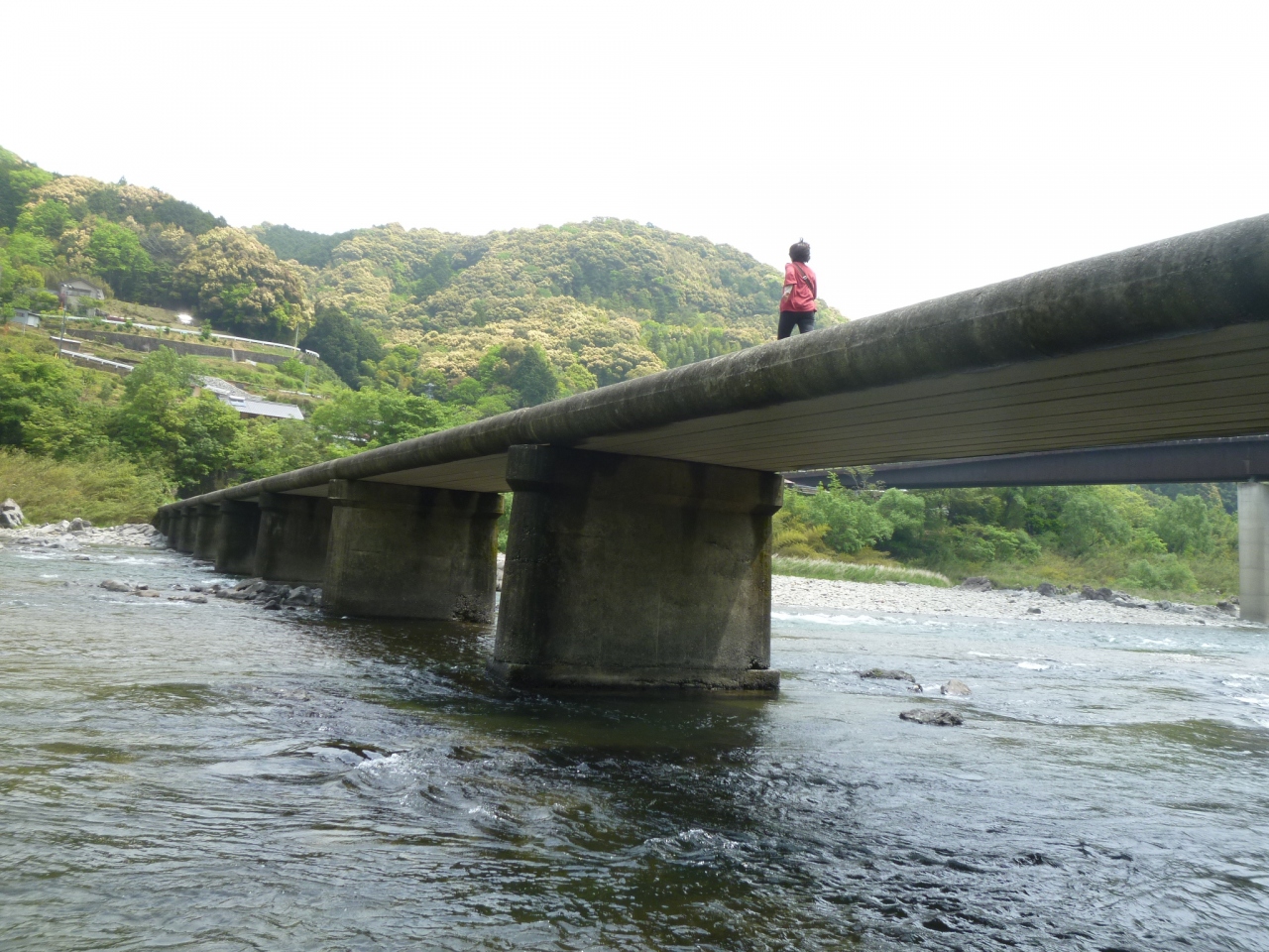 「道の駅四万十とおわ」から比較的近く、自然豊かな山あいにあり、観光客は他にいませんでした。駐車場はなく、近くの広いスペースに停めました。橋げたに欄干がない橋で、コンクリートで頑丈にできています。橋に並行してJRの鉄橋も走っていていいフォトポイントです。川岸にも降りられ、岩場が多く水に触れたり、下から見上げる橋も良かったです。誰もいなく妻とこの橋を独占できて貴重な時間でした。