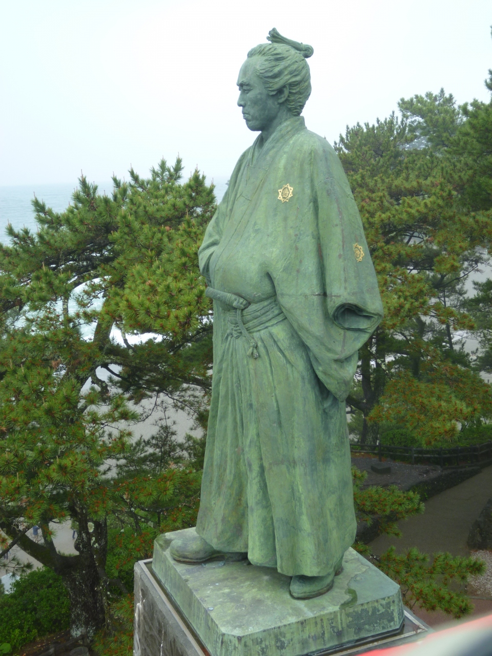 桂浜にある銅像は、台座も含め13,5mあるそうです。目立つため、是非登ってみたいと思う人は多いと思います。銅像のすぐ近くまでに登れるので、和服にブーツで両手を懐に入れ、太平洋を見据える竜馬を近くで見れました。太平洋を眺め何を思う竜馬の隣で一人感動していました。