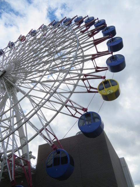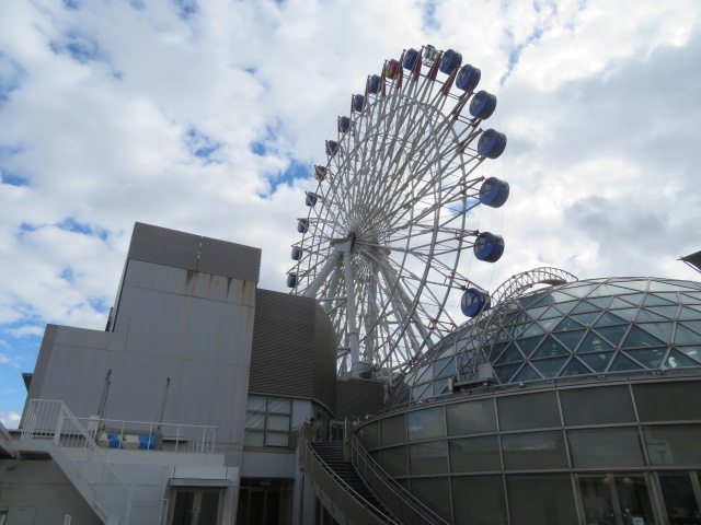 伊予鉄松山市駅がある百貨店のいよてつ高島屋の9階・屋上にある大観覧車です、いよてつの電車・バス乗り放題チケットがありば1回無料で利用できるので乗りました、ちょっとの間360度の眺望を楽しむことが出来ました、すぐ近くに松山城と市街地が見えます、遠くに瀬戸内海と島々に周辺の山々が見えました、一人でのんびり出来ました。