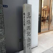 銀座三越や銀座和光などがある銀座四丁目交差点から直ぐ、銀座中央通り沿いのミキモトの本店前にありました。ミキモトの創業者である御木本幸吉氏の功績を称えて建てられた記念碑のようですが、新しく綺麗な店舗とは対照的で史跡なような古い記念碑なので地味で存在感もなかったです。