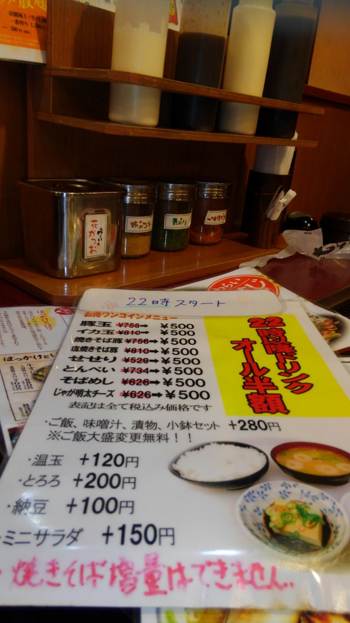 土日は焼きそばの量が追加料金なしで2倍になる(特大)。