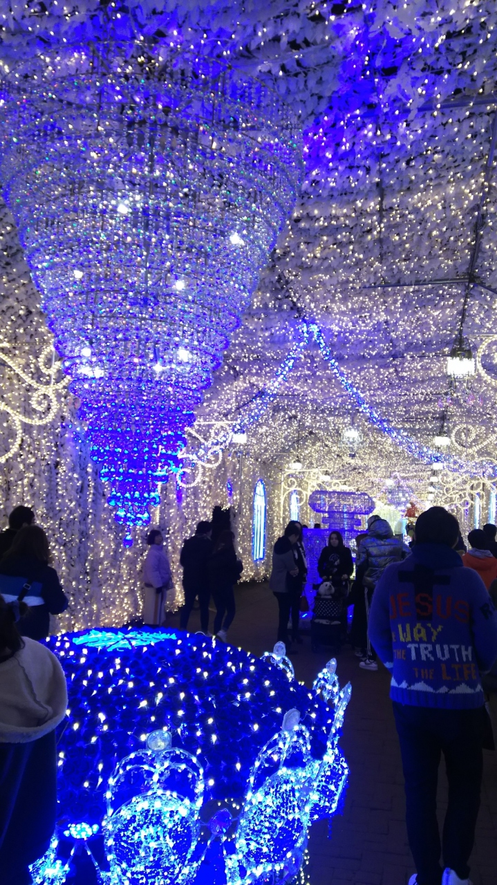 イルミネーションで彩られたトンネルはとても明るくて電飾でキラキラとしており、美しいライトアップでした。