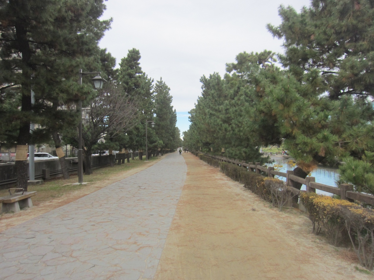 草加の綾瀬川に沿って約1.5kmほど続く松並木の道で、日本の道100選にも選ばれている整備された歩道です。松原団地駅から改称された東武鉄道の獨協大学前駅の副駅名が「草加松原」になっており、駅から5分くらい歩いたところの百代橋で松原遊歩道に到着します。道幅も広く、のんびりと散歩するには良い遊歩道となっています。奥の細道の旅の第1日目にも記されているそうです。