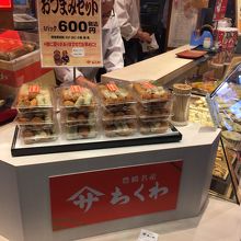 刈谷ハイウェイオアシス内にある ちくわで有名なヤマサさんの店舗です。作ったものをこの店舗に運んでいるのではなく、店内で焼いたり、揚げたりしているようで、出来立てを購入することができます。ちくわの磯辺揚げ とっても美味しかったです。