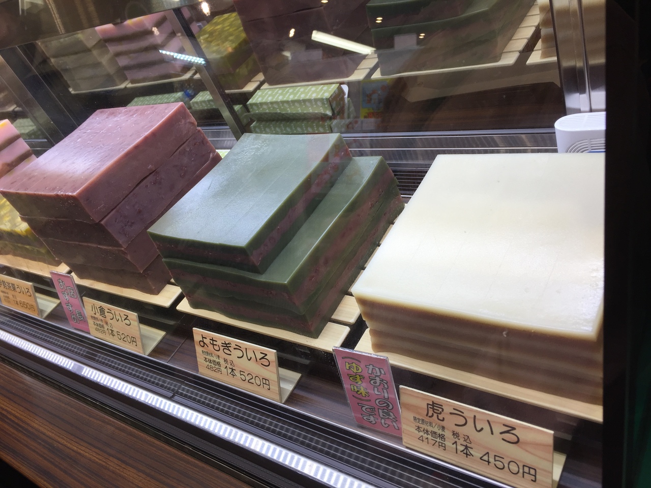 ういろうが 割と好きですが、真空パック?仕様になっているういろうしか 食べたことがなくて、こちらにある虎屋さんの ショーケースに ドーンと並べられた ういろうを見て感激しました。賞味期限の関係で 1種類しか買えませんでしたが、お抹茶味 メチャクチャ美味しかったです。