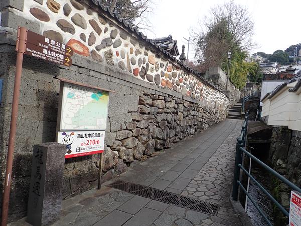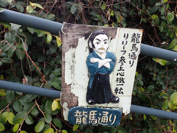 寺町から亀山社中へ向かう急な上り道。龍馬のイラストがかわいい