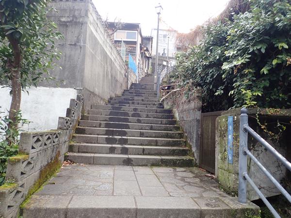 長崎の興福寺などがある寺町から龍馬ゆかりの亀山社中に続く急な坂道、階段です。