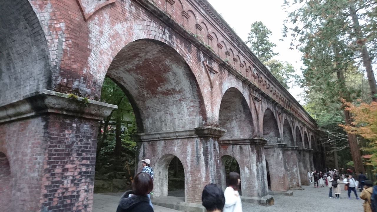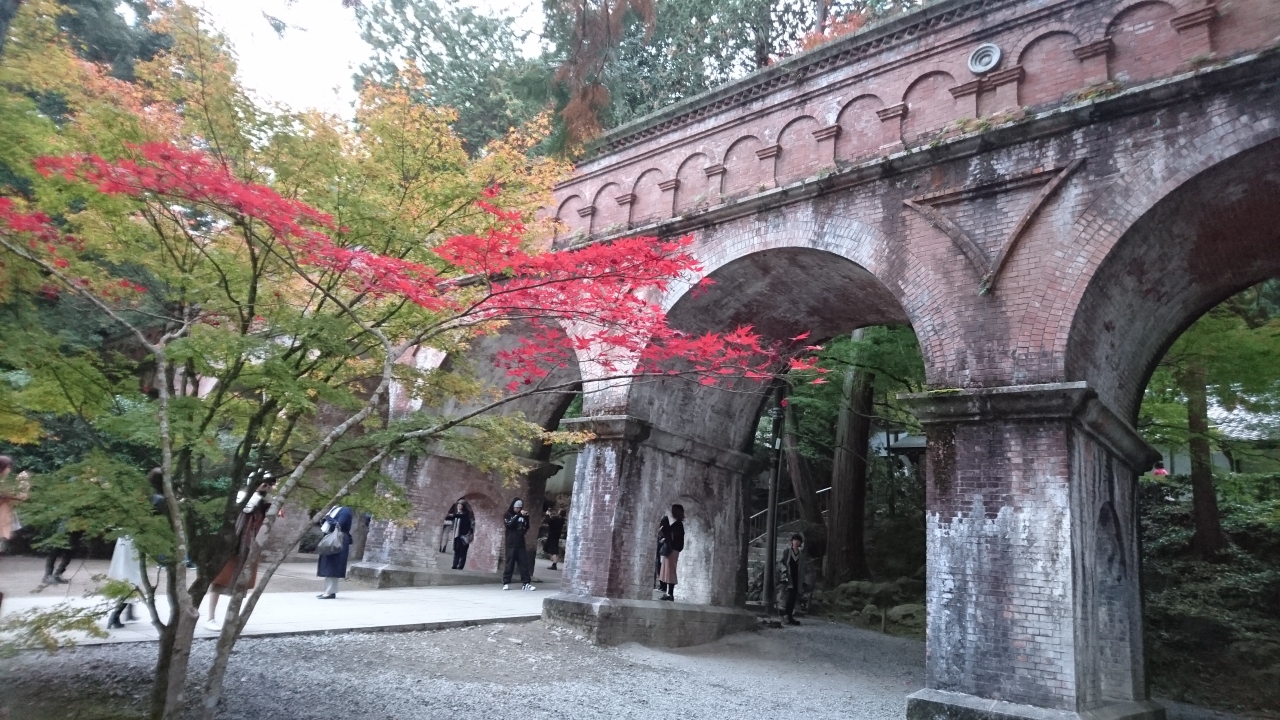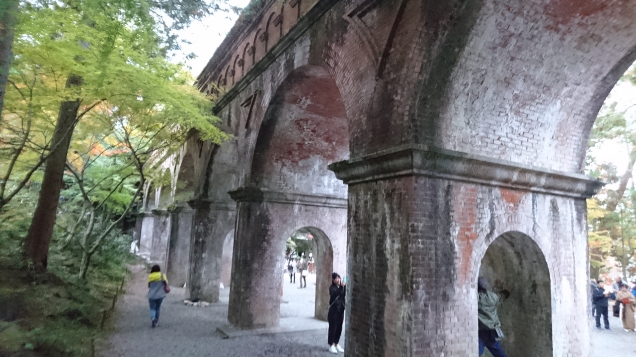 紅葉狩りをしに、京都の南禅寺の水路閣に行きました。水路閣はテレビやポスターで見たことがあったので一度行ってみたいと思いました。このとき行った時期は平日の夕方でしたが、多くの観光客がいました。見る角度によって、異なる表情を見せて絵になる撮影スポットです。