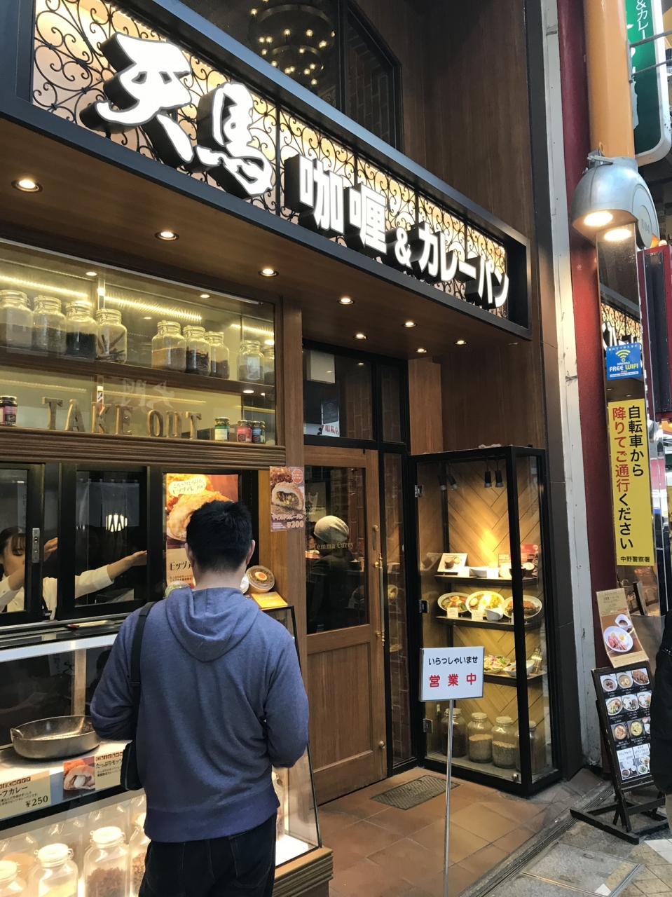 カレーとカレーパンの専門店の天馬です。店頭に並ぶカレーパンは一つ200円台からテイクアウトできます。衣がサクサクしていて中は本格的なカレーが入っていて、カレーパンとあなどるなかれなかなか美味しいですね。