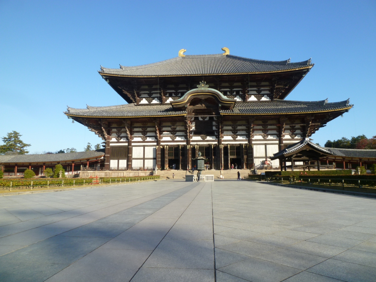 早朝に行ったので、誰もいなく金堂の前で写真も撮れました。中には奈良の大仏がいますが、大きくて迫力があり手を合わせてると御利益があるような雰囲気があります。大仏の裏からまわり、大仏の手も置いてあり、大きさに驚きます。柱に穴が開いていて、通るといいことがあるみたいです。世界最大の木造建築ですが、創建当時の3分の2というからどれだけ大きかったか、当時の建築技術を尊敬します。