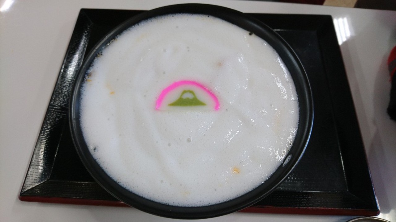 上りのフードコート、名物?の雲海ラーメン、中はピリ辛味です。味は悪くないと思いますが、上の泡?が冷たいので、あっという間にめるいラーメンになってしまいます。