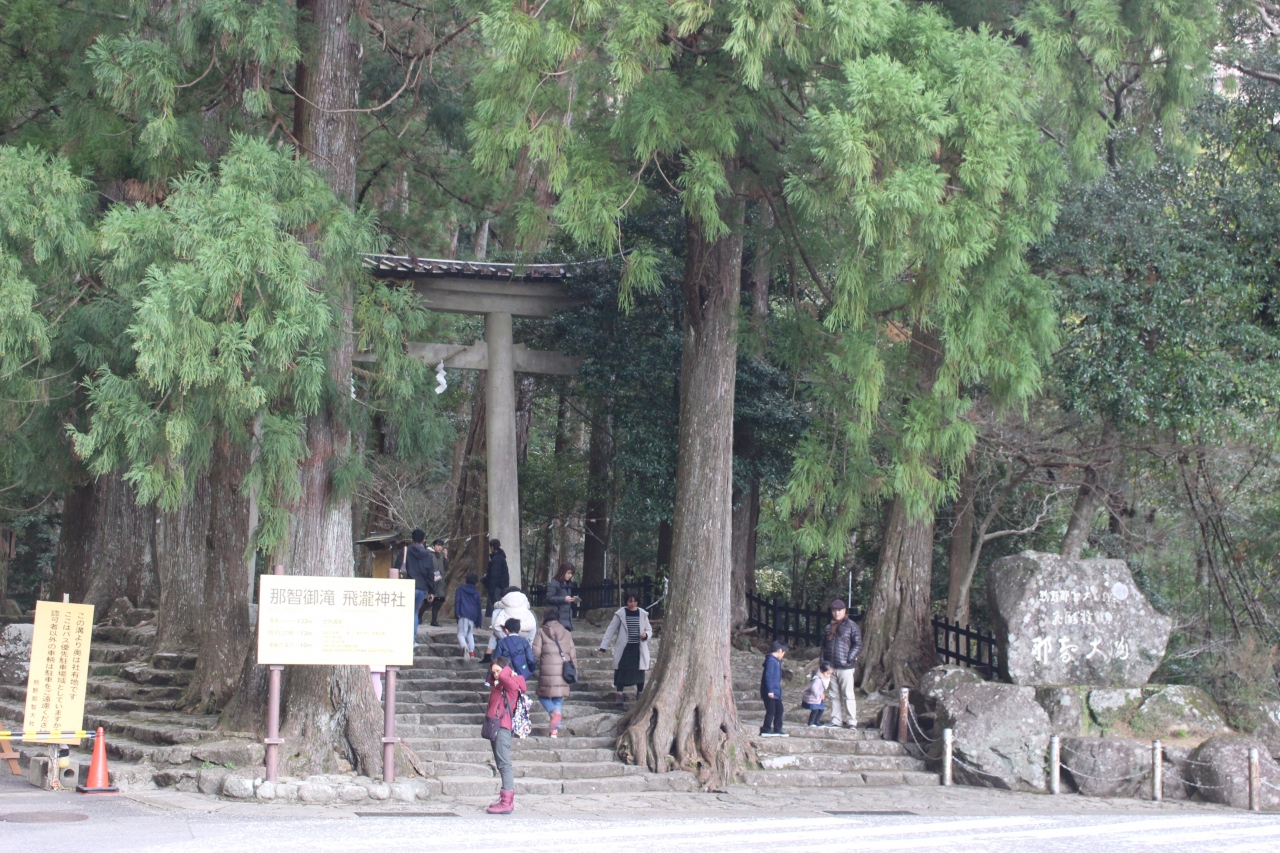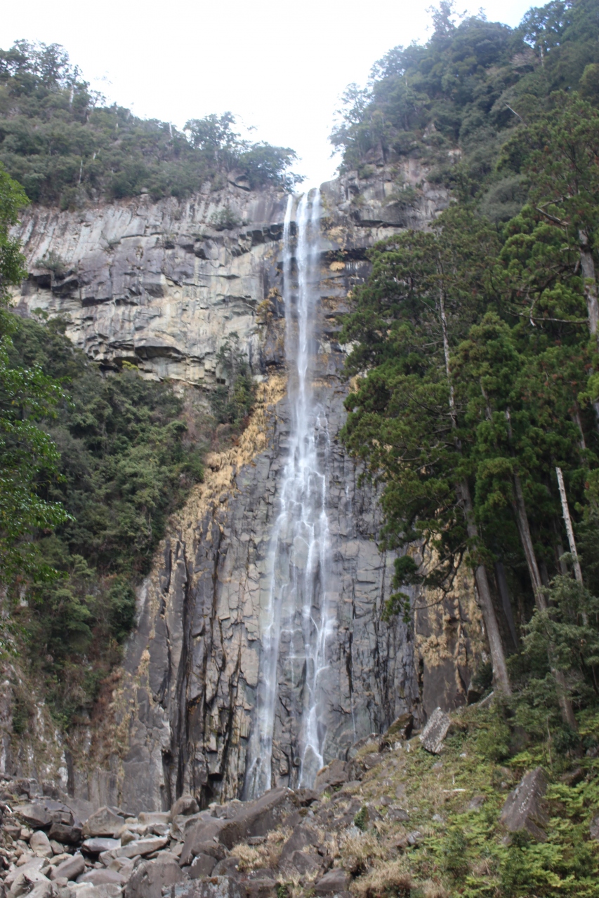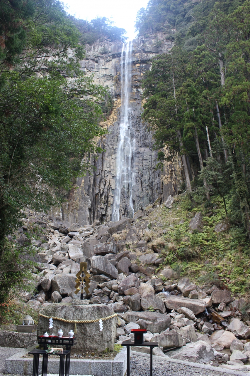 紀伊勝浦駅・那智駅からのバスで行くと、終点の1つ手前の「那智の滝前」で下車、車なら有料駐車場に車を駐車して石段を降りていくと滝の目の前です。