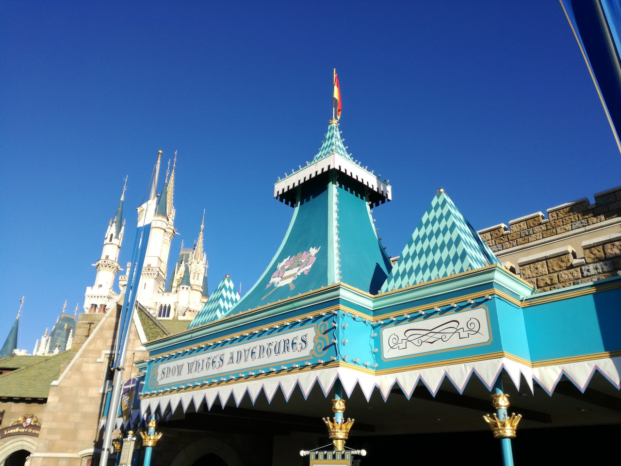 東京ディズニーランドのファンタジーランドにあるアトラクションのひとつです。待ち時間が10分程だったので乗りました。トロッコに乗って「白雪姫と七人のこびと」の物語の世界を巡るアトラクションですが、暗い感じであまり楽しいアトラクションではなかったのが残念でした。