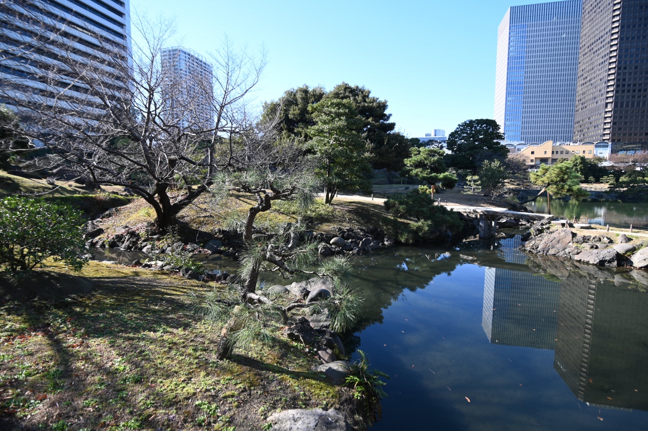 南側の大きなオフィスビルの影響で、庭園内に大きな日影が出来てしまうのが残念です。