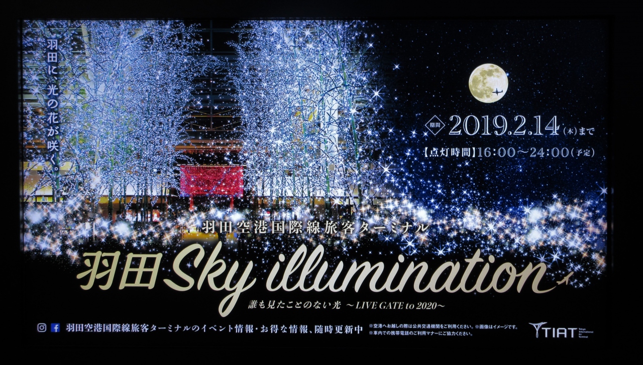 国際線ターミナルでは2019年2月14日までスカイイルミネーションが見られます。