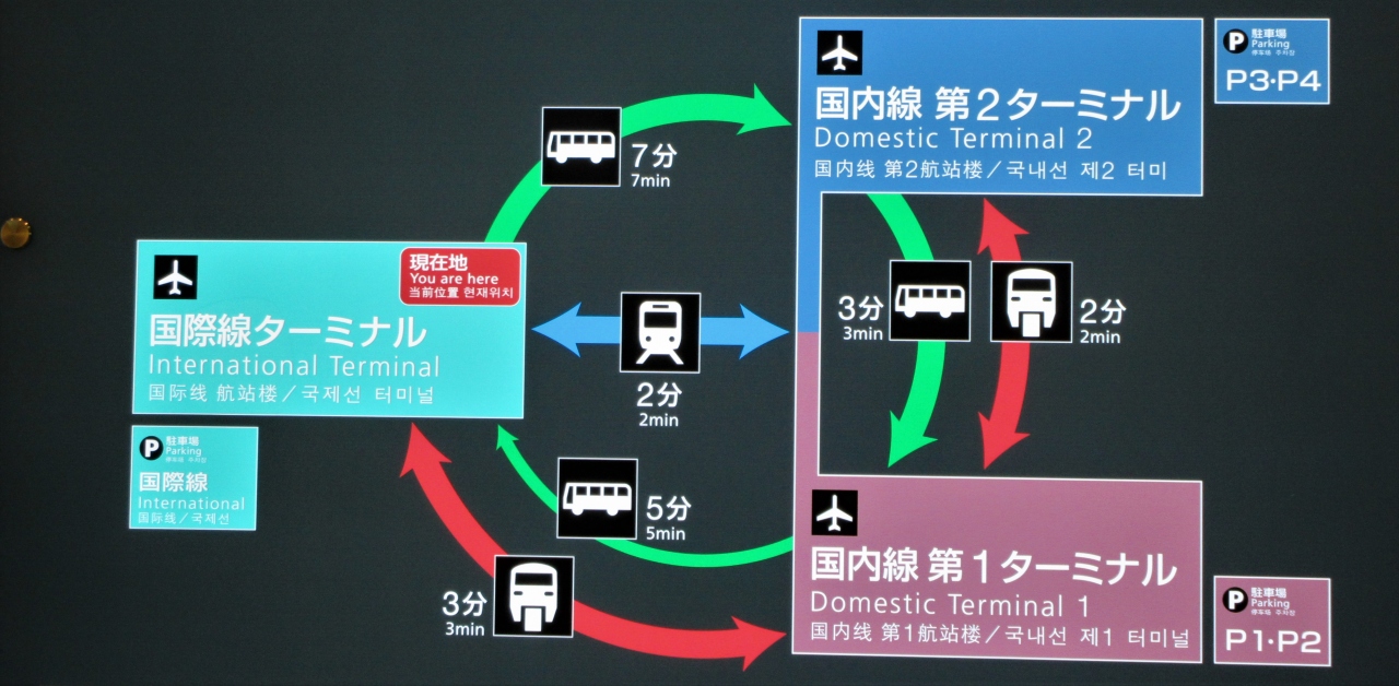 羽田空港のターミナル間は無料のシャトルバスで行き来が出来ます。