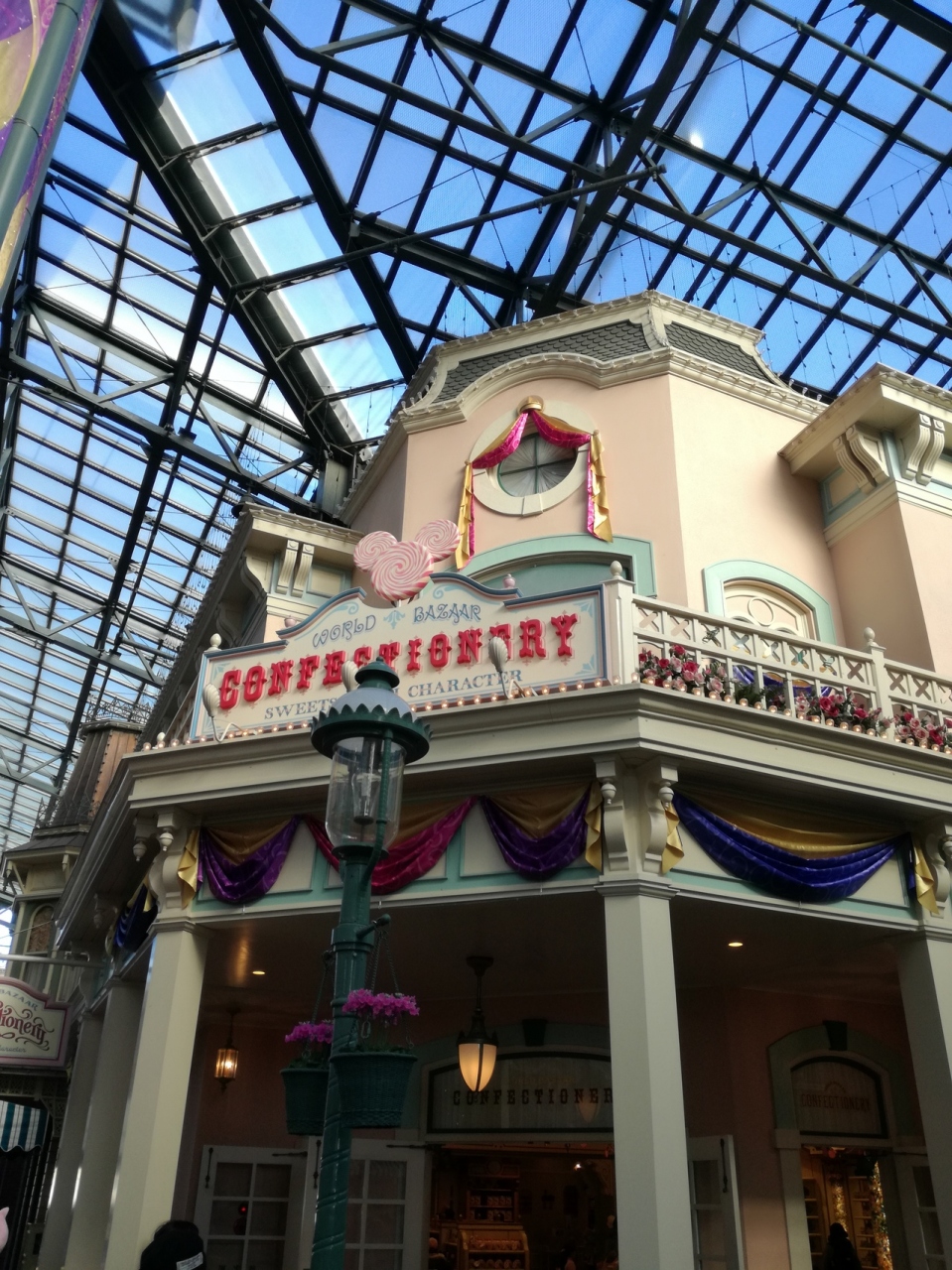 東京ディズニーランドのワールドバザールにあるお菓子の専門店です。ディズニーランドでいちばん大きなお菓子のお店と言うだけあって品揃えはかなり充実していました。ディズニーキャラクターがデザインされた可愛いクッキー、チョコ、キャンディーなどの缶や箱がずらりと棚に並んでおり、どれも美味しそうなので迷いましたが、結局は定番のクランチチョコを買って帰りました。