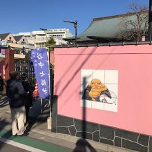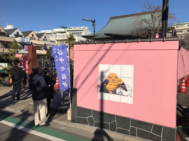 JR日暮里駅の北口改札を出て、御隠坂を昇り夕焼けだんだんを経由してJR西日暮里までお寺巡りをしている途中で見つけたお寺です。お寺の壁がピンク色に塗られて、一種異様な感じでした。そのピンク壁にも描かれていましたが、布袋さんが有名なお寺です。変わったお寺でしたが、面白かったです。