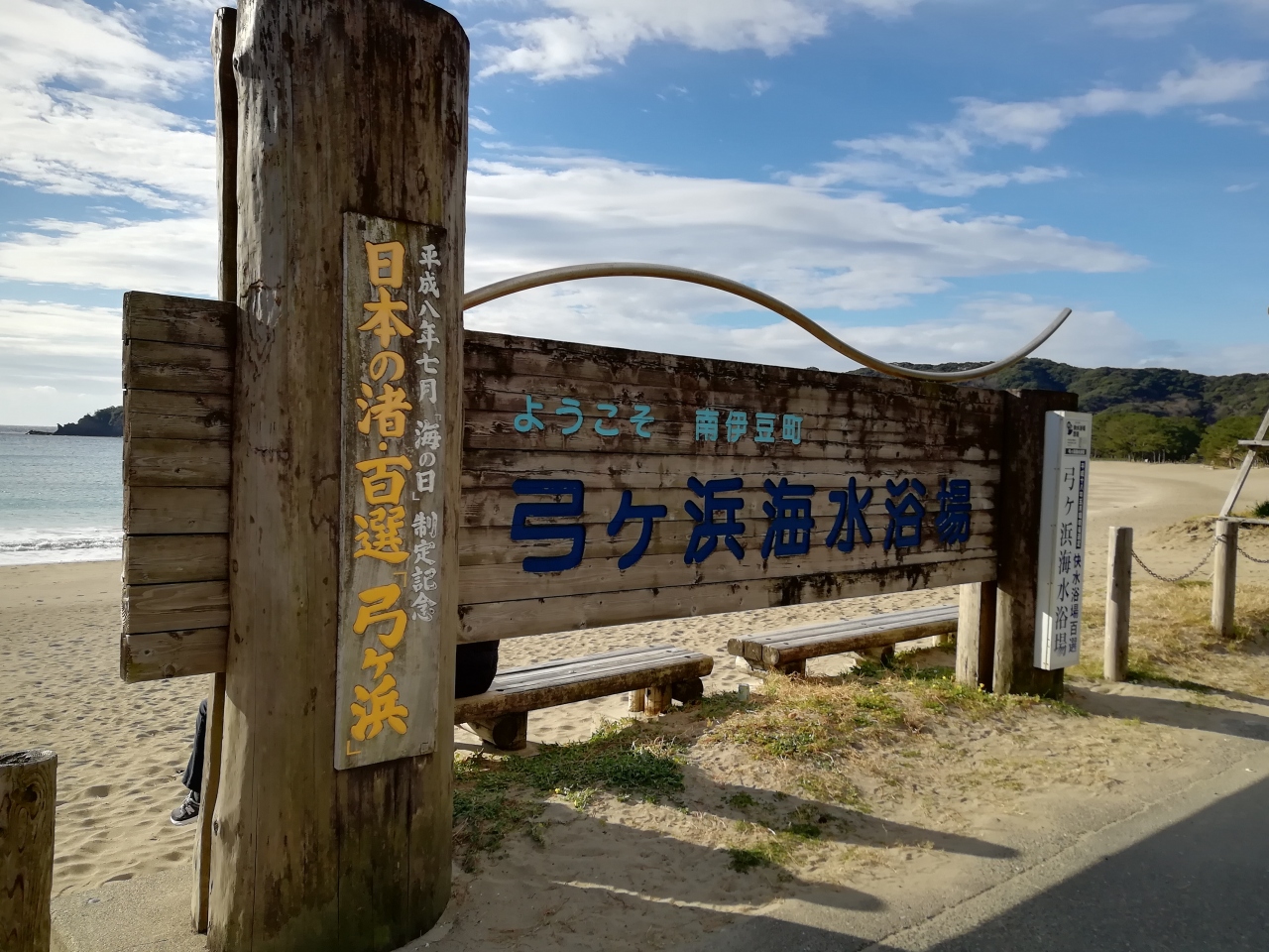 伊豆ドライブで下田から136号線、県道16号線で弓ヶ浜へ。弓ヶ浜は文字通り弓の形湾曲した白砂の海岸です。海水浴場としても有名。伊豆の先端ですので海は透き通って綺麗です。海岸の目の前には無料の駐車場とトイレあり。背面は弓が丘温泉ですのでお宿が多数あり。真冬ですが観光客が大勢いました。