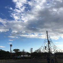 ポニーに乗れる広場や、子どもが走り回れる芝生や、複数の滑り台や遊具が合体した巨大なアスレチックがあるので、子連れでの利用におすすめです。