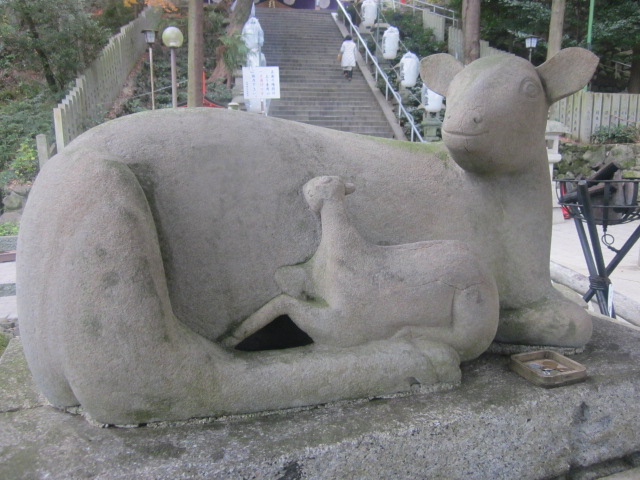 ここでの見所は、本殿手前の石段脇にいらっしゃる撫で鹿さんで、親子のなかなか微笑ましいお姿なので、被写体としても人気を博していますが、勿論、神社内ですので、安産祈願などのご利益を求めて撫でて行かれる方も多いようでした。
