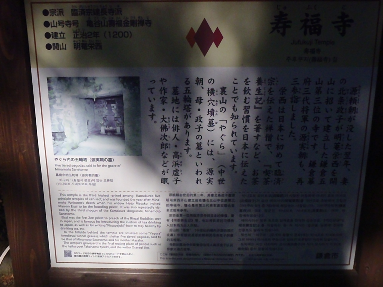 江ノ電鎌倉駅から扇ヶ谷方面へ700m左手に臨済宗亀谷山寿福金剛禅寺がありますか。