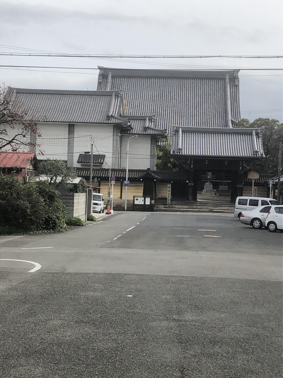 阪堺電車の神明町電停から東に入っていくと、辺りはお寺の立ち並ぶ雰囲気のいい街並み。そこに一際高く角に鐘楼のあるお寺がある。鐘楼の下に行くと、そこが大きなお寺で、山門前の道がそこだけ異様に広いのに驚く。それもそのはず、明治初頭には現在の府内の泉州、河内に奈良、和歌山の一部を治める巨大な堺県の県庁所在地が置かれていた所だからである。