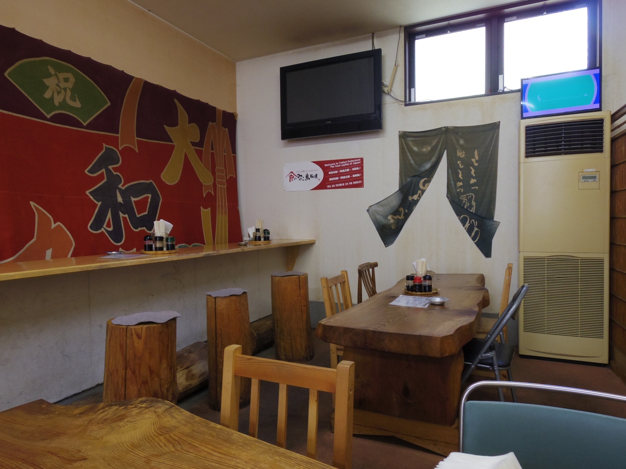 駅から歩いて少々。列車の乗り継ぎ時間を生かして訪ねました。ごくごく普通の食堂ですが海鮮ものが充実しています。テレビで高校野球を見ながら昼食を食べていると、何か鳥取の日常生活に紛れ込んだ錯覚を覚えます。