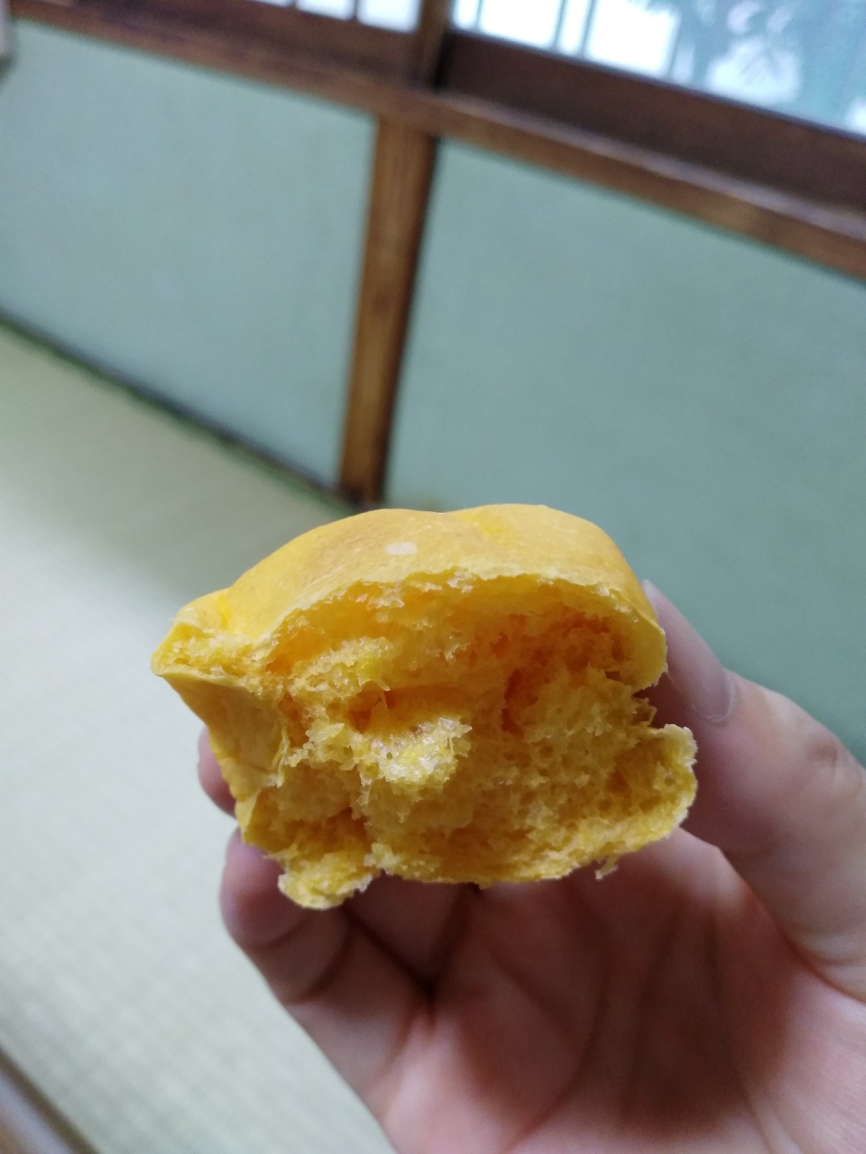 カウンターの向こう側にパンが飾ってあり、パンの名前は書いてあるが、何味なのか説明はない。