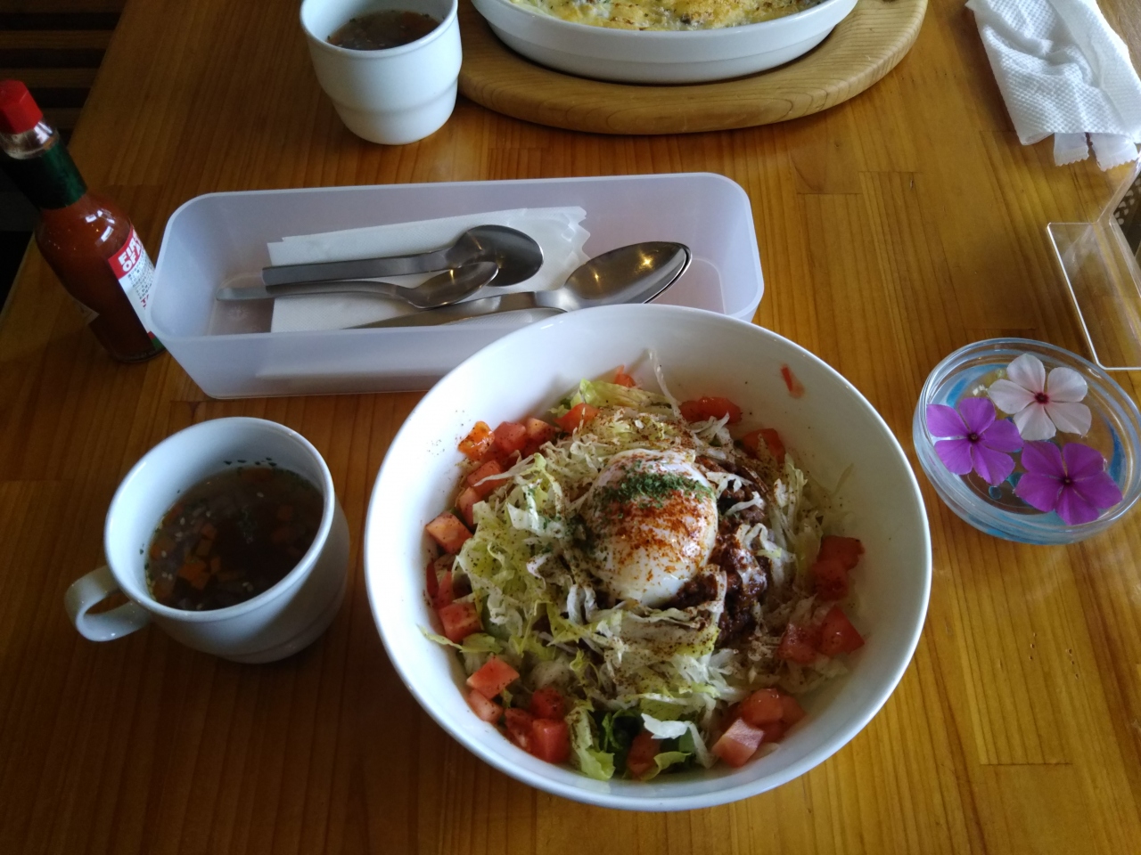 食べたのは人気メニューの「宮古牛タコライス温玉のせ」。丁度良い量で、もちろん味についても満足できました。