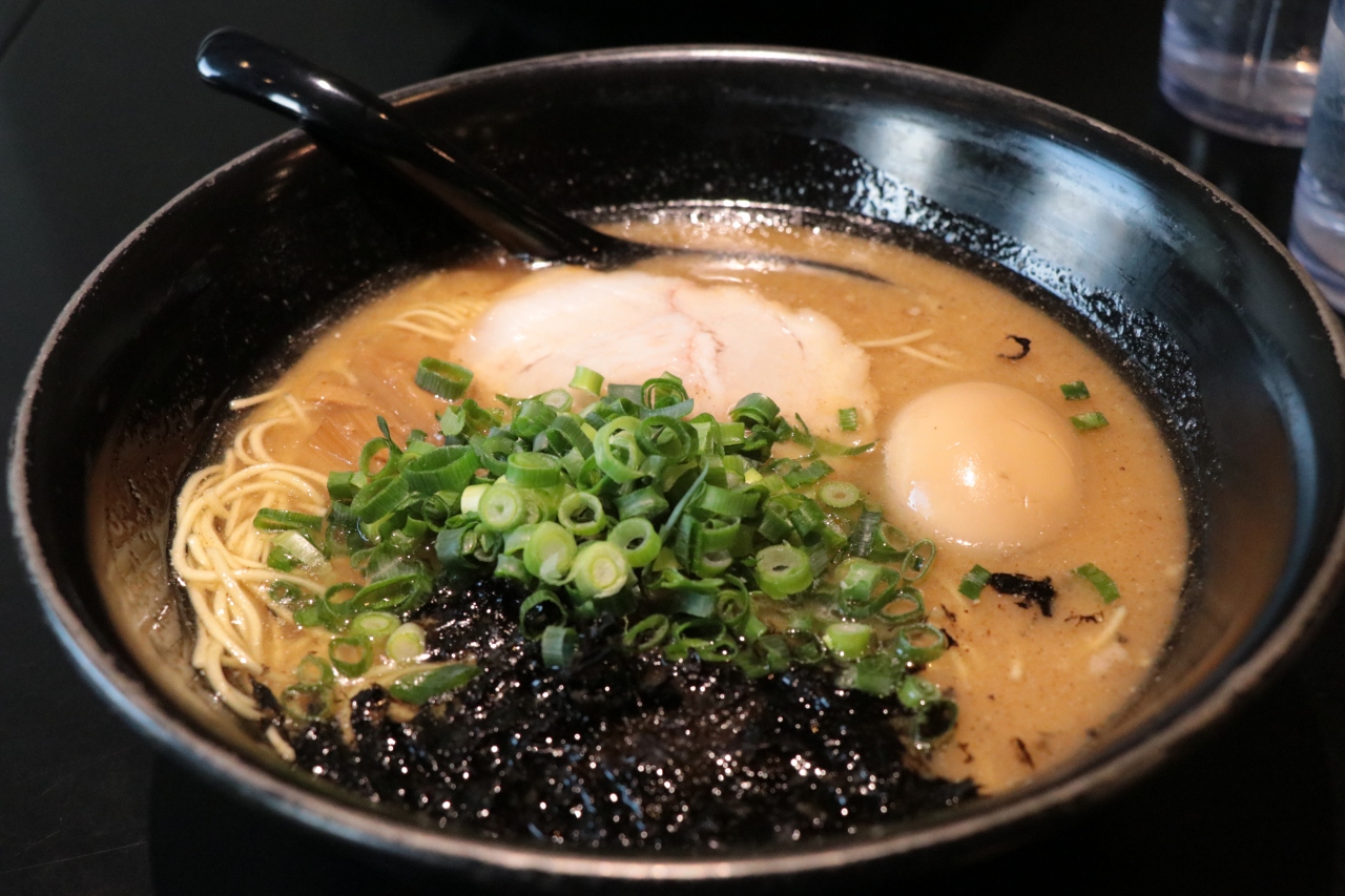豚骨ベースでいくつかの種類があり、オーダーしたのは豚骨醤油。麺の硬さや脂の量を選べるのは他店の豚骨ラーメンと一緒ですが、一番硬いのが「ハリガネ」で怖いもの見たさで注文しようと思いましたが、躊躇してしまい頼めずじまい。餃子セットや唐揚げセットもあるので、量を多く食べたい人にはこうしたセットものもお勧めです。