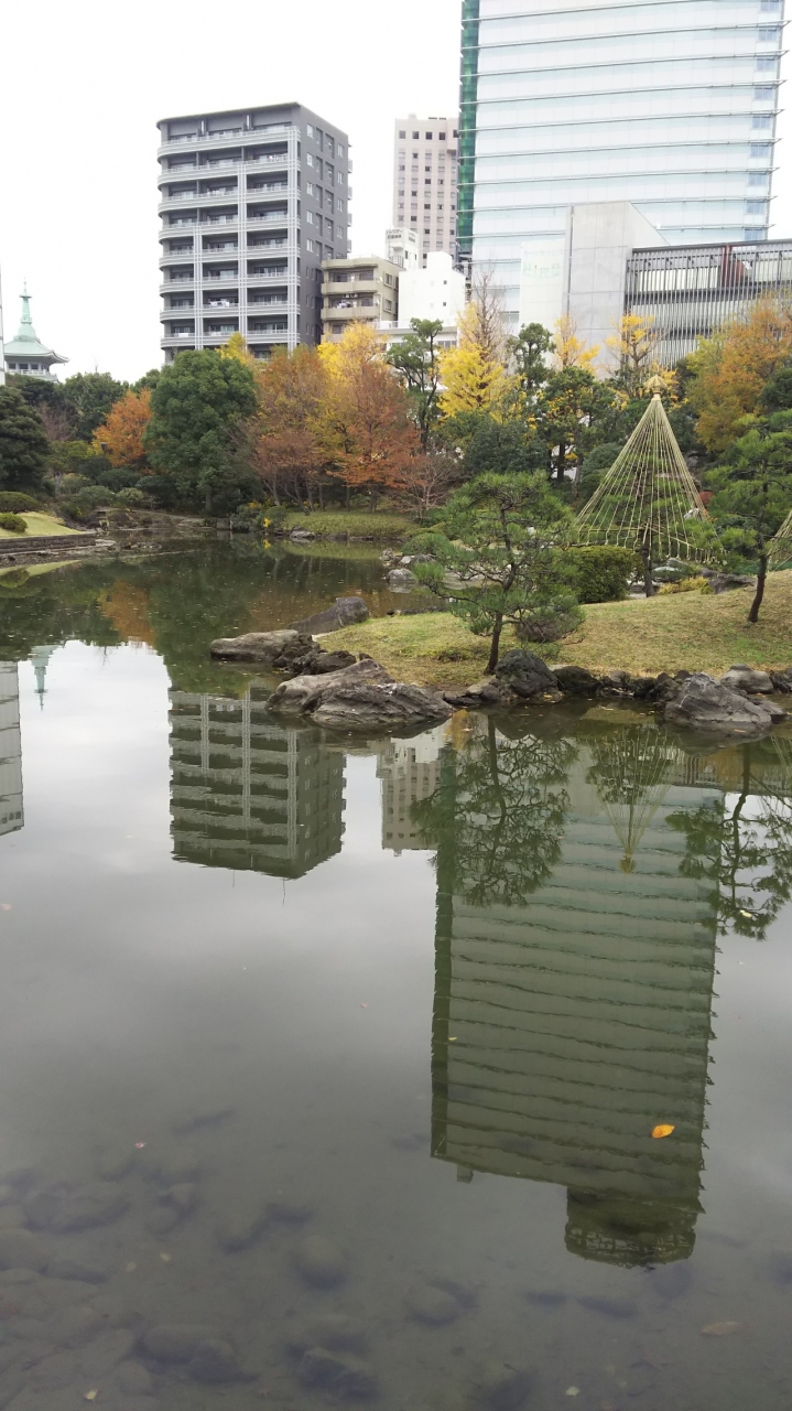 庭園を散策していると大きな池があります。この池はかつて水門があり、隅田川の水を引いてきて干満と満潮によって水位が変わるよう細工されていました。