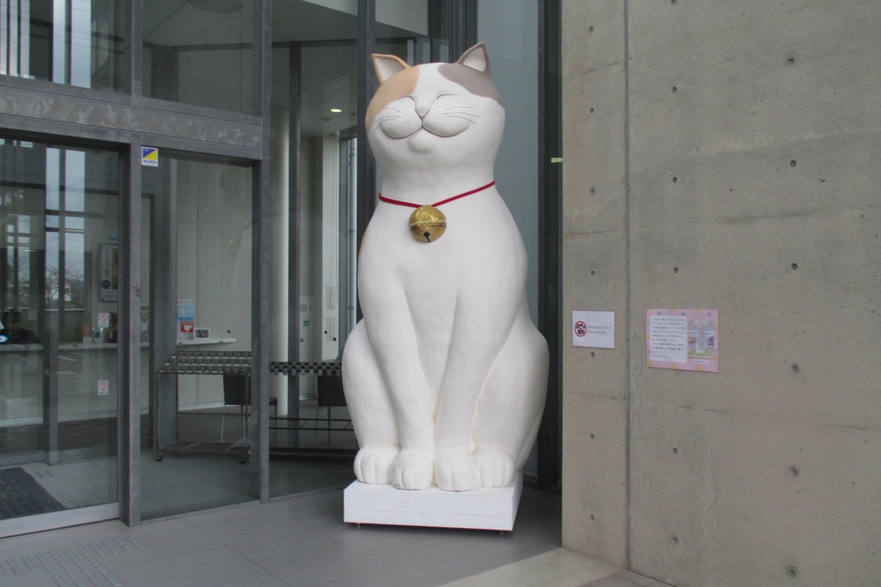 入口の手前のガラスの中にはネコちゃんの像が置かれ、入口には大きなネコちゃんが置かれていました。ここは美術館ですが、尾道としてはネコちゃんも前面に出したい・・・そんな中途半端さを感じました。マレーシアのボルネオ島のクチン市は、クチンがマレーシア語でネコという意味があることもあって、もっとネコを前面に出して観光活動をしています。美術館としては余程有名な作品がない限り、観光客は呼べませんから、尾道も観光施策をもっともっと練ったら良いのにと思いました。