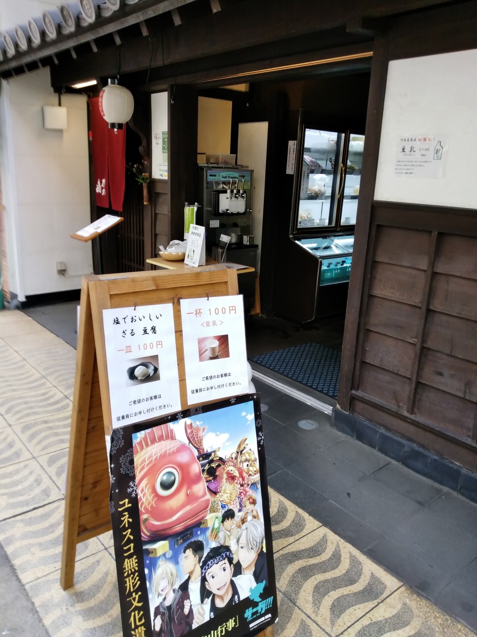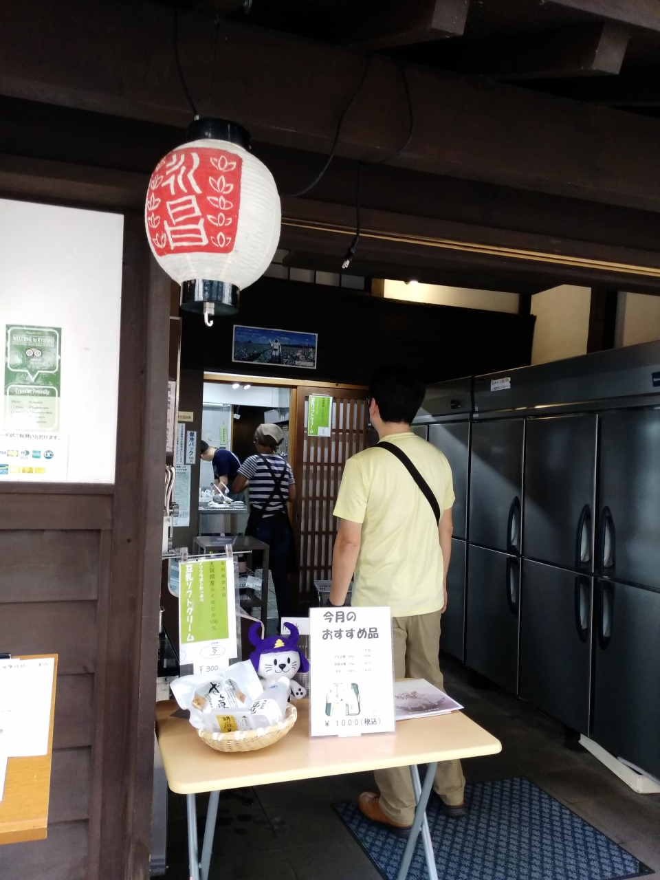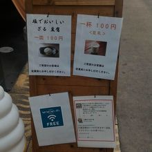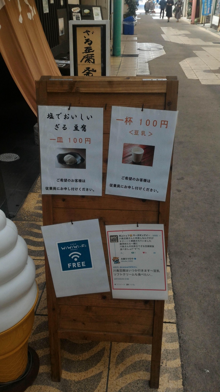 店頭では豆乳一杯100円、ざる豆腐一皿100円、ソフトクリーム300円を食べる事ができます。