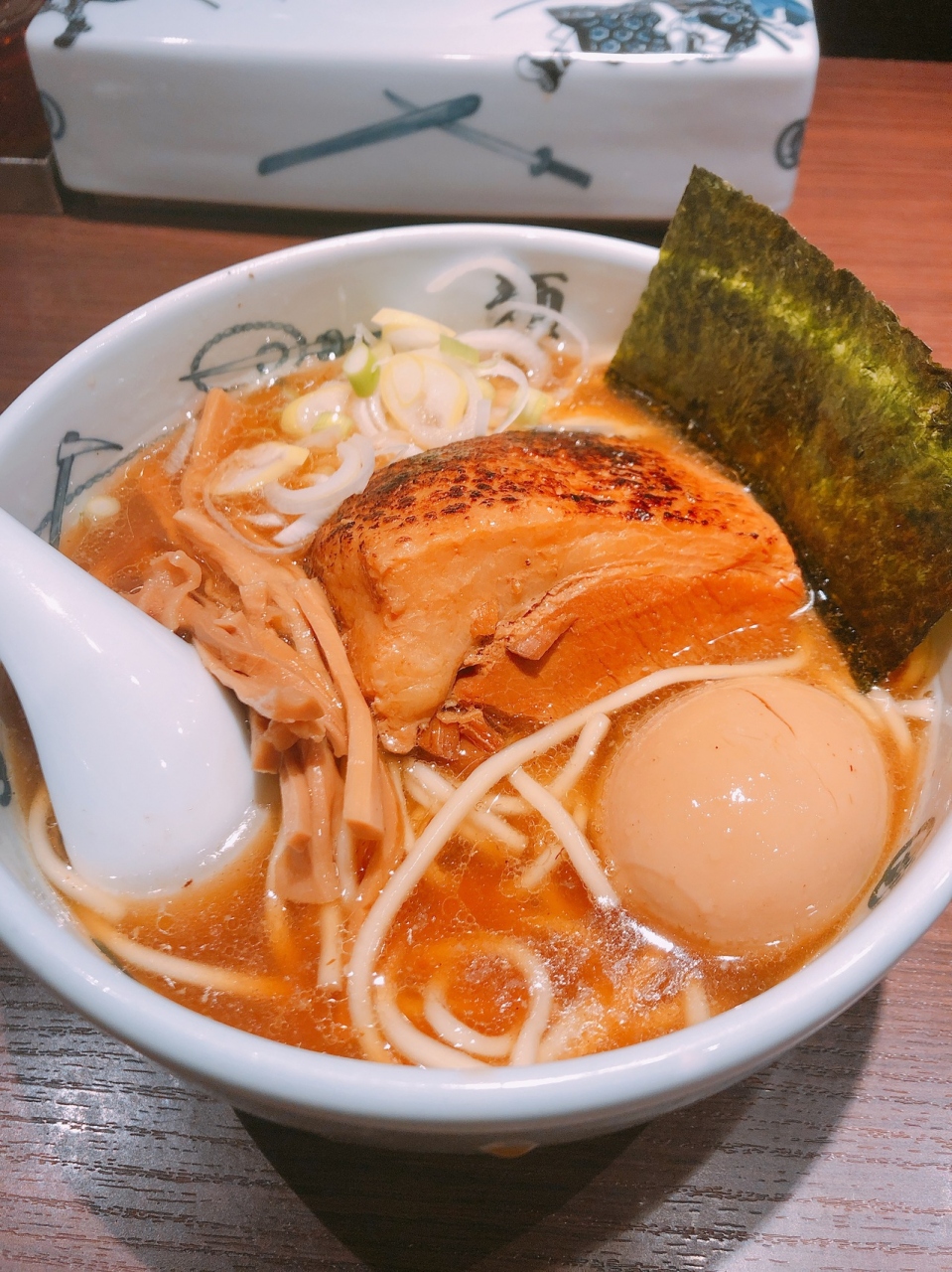 仕事初めに会社近くの麺屋武蔵へ同僚と行きました。券売機の前に3人くらい並んでいましたが、すぐにカウンターへ着席できました。名物のつけ麺にしようか迷ったのですが、この日の気分はツユありだったので、ラーメンにしました。煮豚が凄い柔らかくて美味しかったです。
