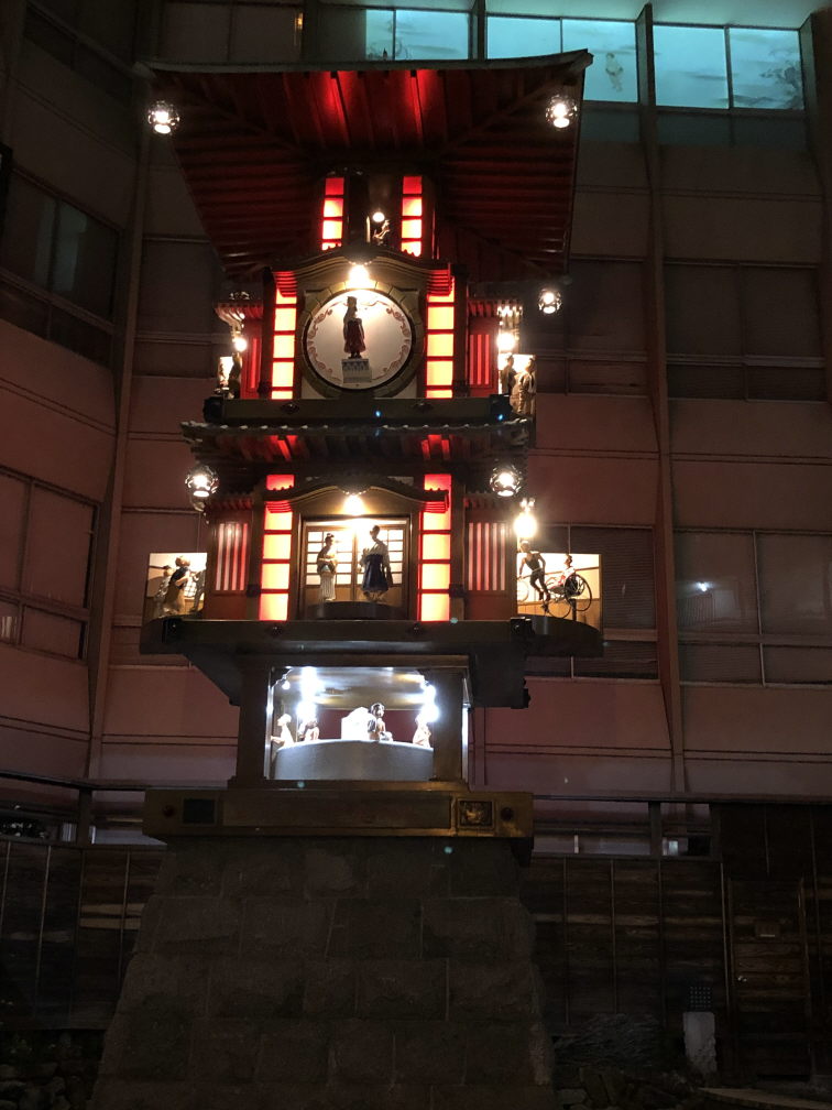 ふだんは1時間に一回だけ動くそうですが、繁忙期は30分に一回動くそうで、私が訪れた時は30分に一回でした。時間になると時計がせりあがり、マドンナはじめ、「坊っちゃん」の登場人物が出てきます。もっと動きがあるものかと思っていたら、そうではありませんでした。でも、道後に行ったら一度は見ておきたいですね。