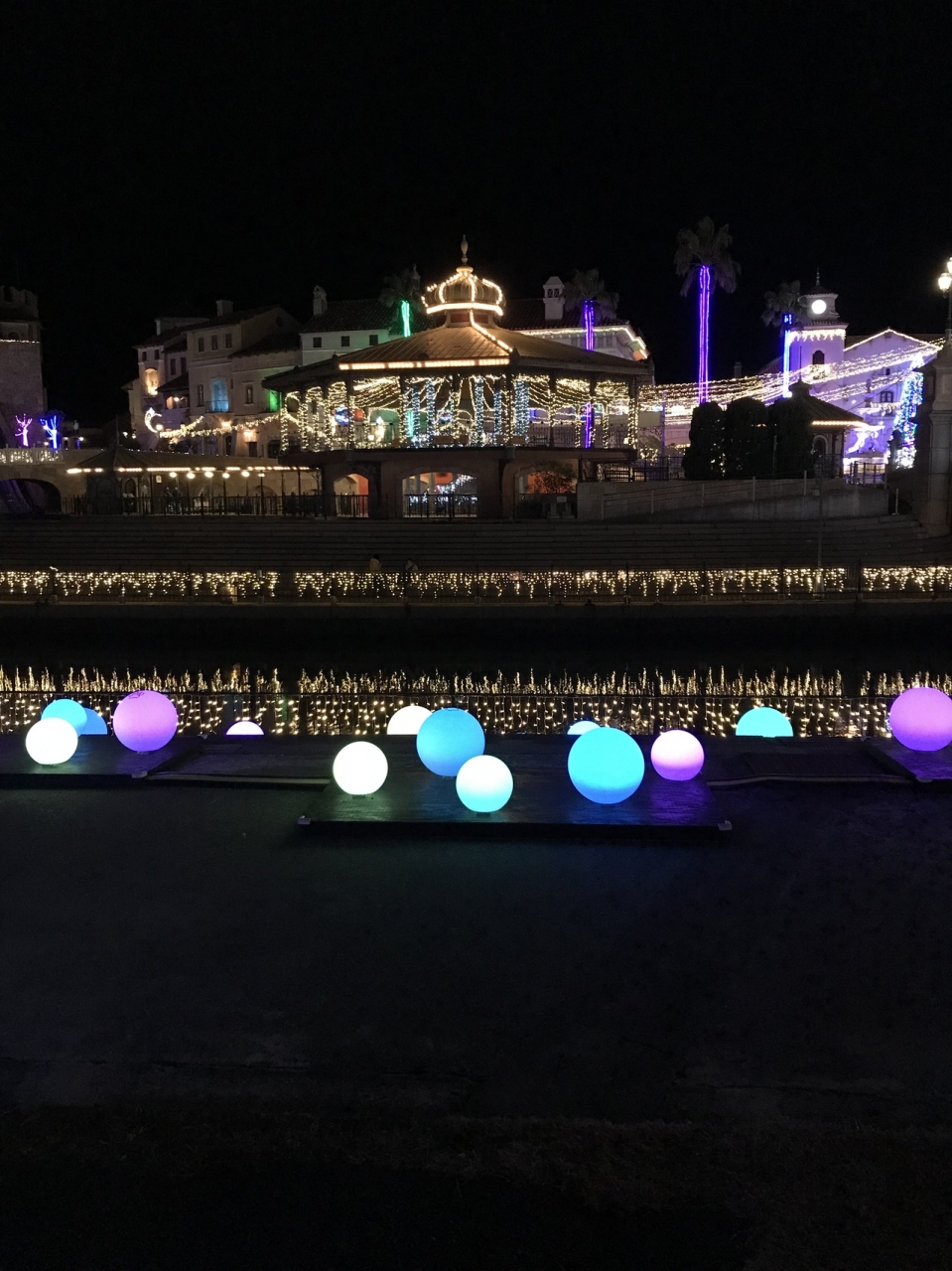 ポルトヨーロッパ内が、さまざまなイルミネーションで一面に光り輝いていました。
