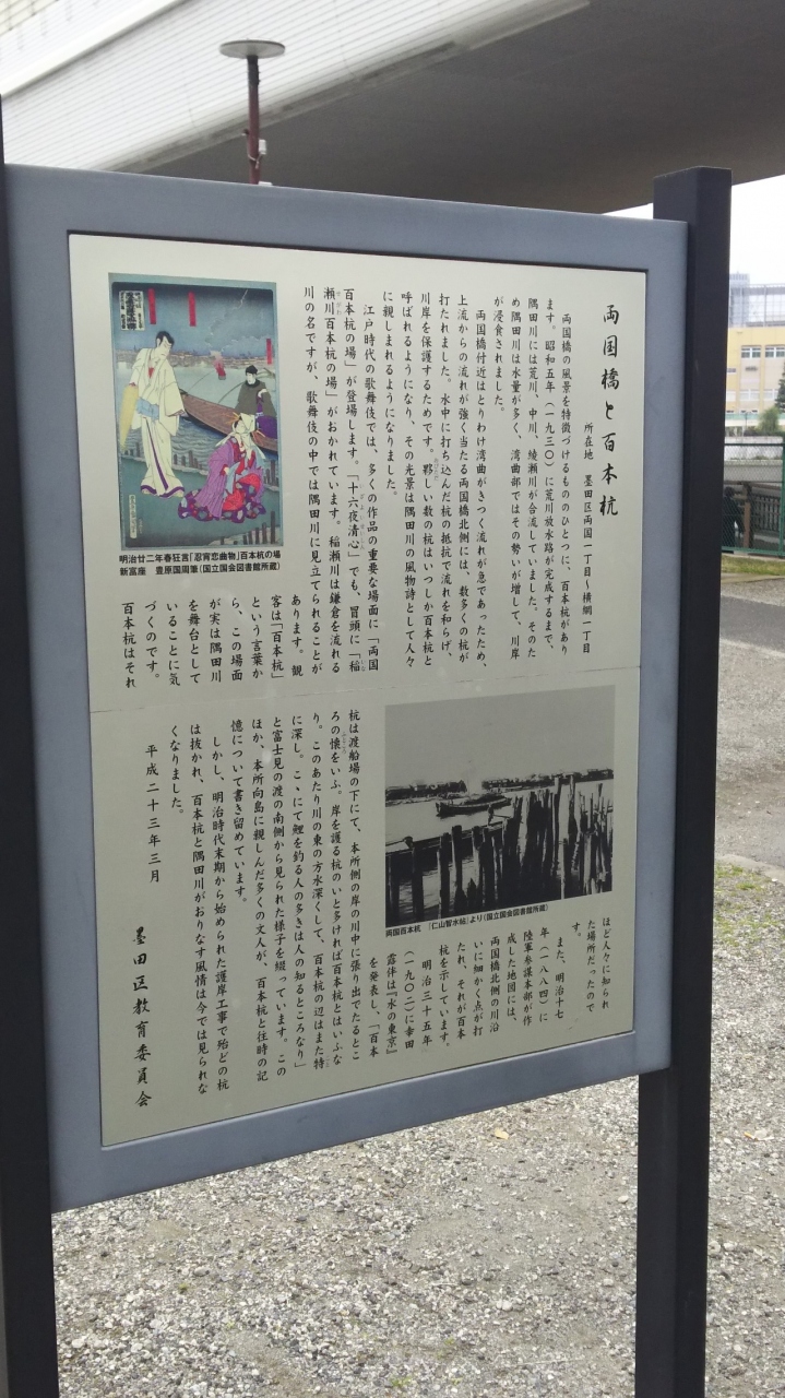 百本杭は、隅田川の現在の両国側の岸が浸食されるのをやわらげるために打ち込まれたたくさんの杭のことです。